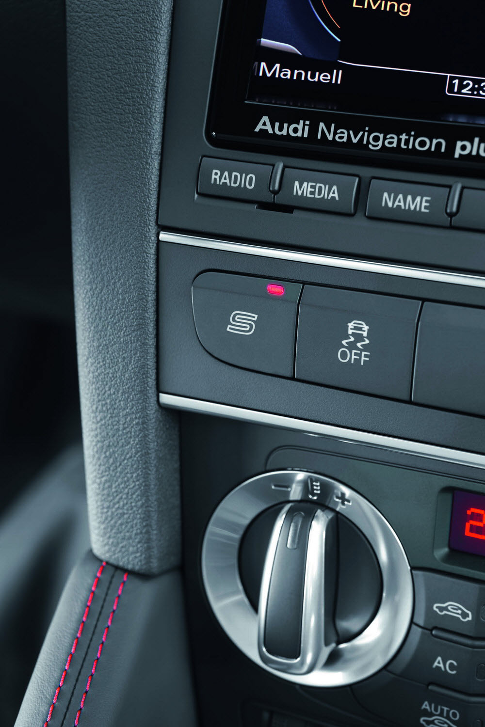 The driver can operate the seven-gear S tronic in two automatic modes and one manual mode. Gears are shifted using the paddles on the steering wheel or the selector lever. The launch control system manages the sprint from a dead stop, furnishing explosive turbo power with minimal tire slip.
